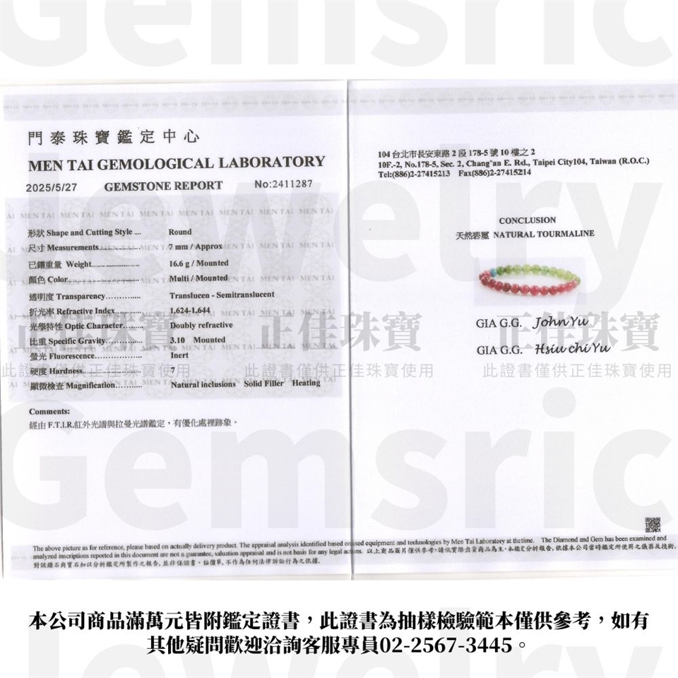 主角:彩碧璽 超頂級 漸變濃彩透體碧璽 7-7.5mm 彩碧璽手珠