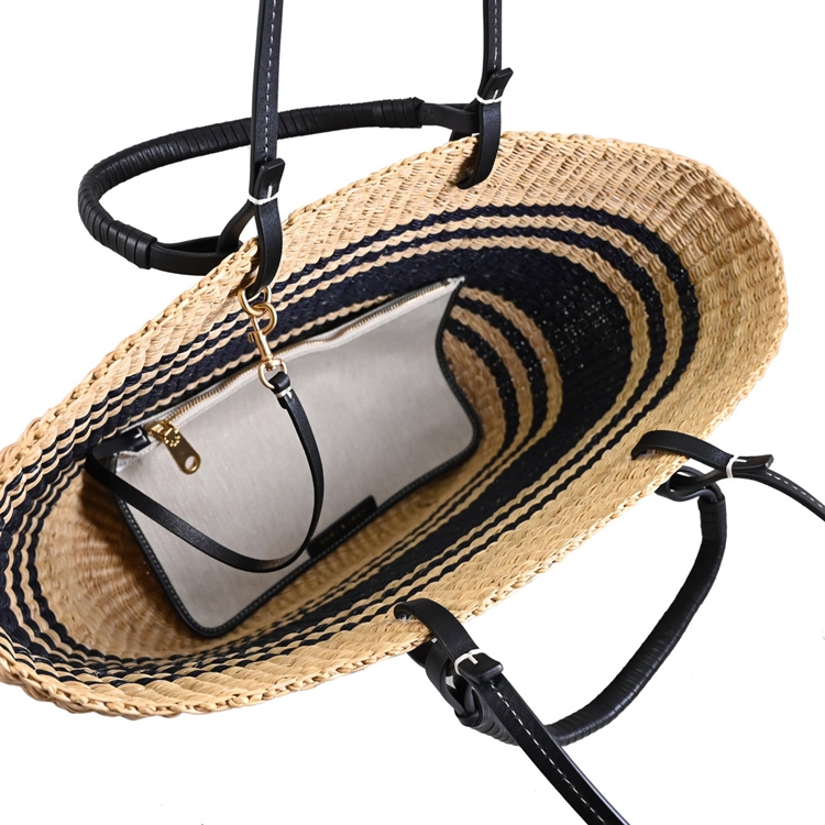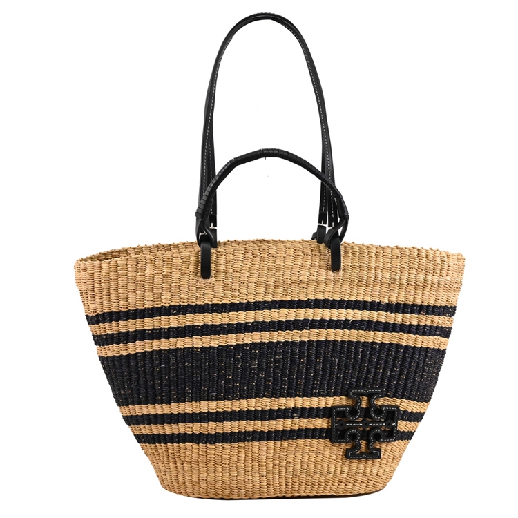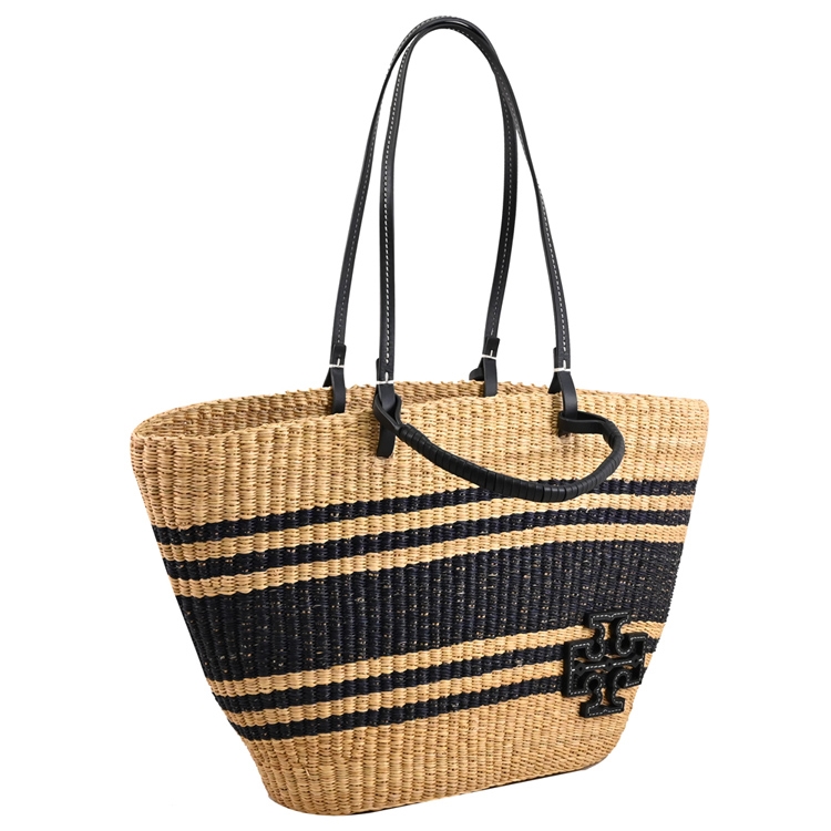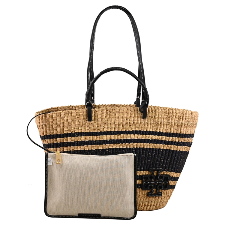 美國紐約時尚品牌 TORY BURCH(托里.伯奇) 來自於美國輕奢品牌,是近年來討論度極高的熱門精品品牌,鮮明大膽色彩表現,一眼看出這品牌LOGO設計;此款是專櫃新款肩背草編包,標誌LOGO搭配條紋草編拼接皮革,附可拆卸的拉鍊小收納包,內可放A4文件及雨傘等隨身物品,可隨性肩背或手提,外出出遊皆合適,顯出休閒愜意的鄉村度假風,大容量讓你隨身物品一包搞定。