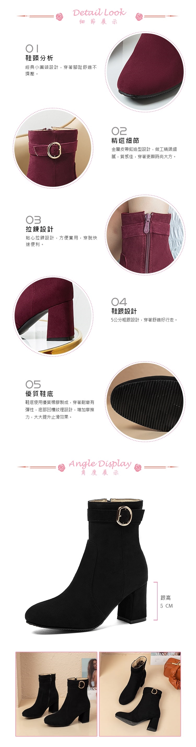 穩固粗跟好行走/防滑彈性大底/翻絨鞋面復古優雅