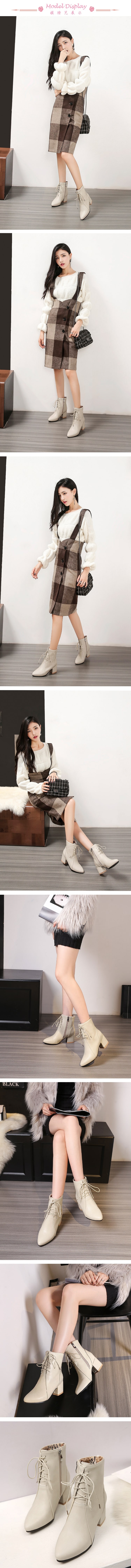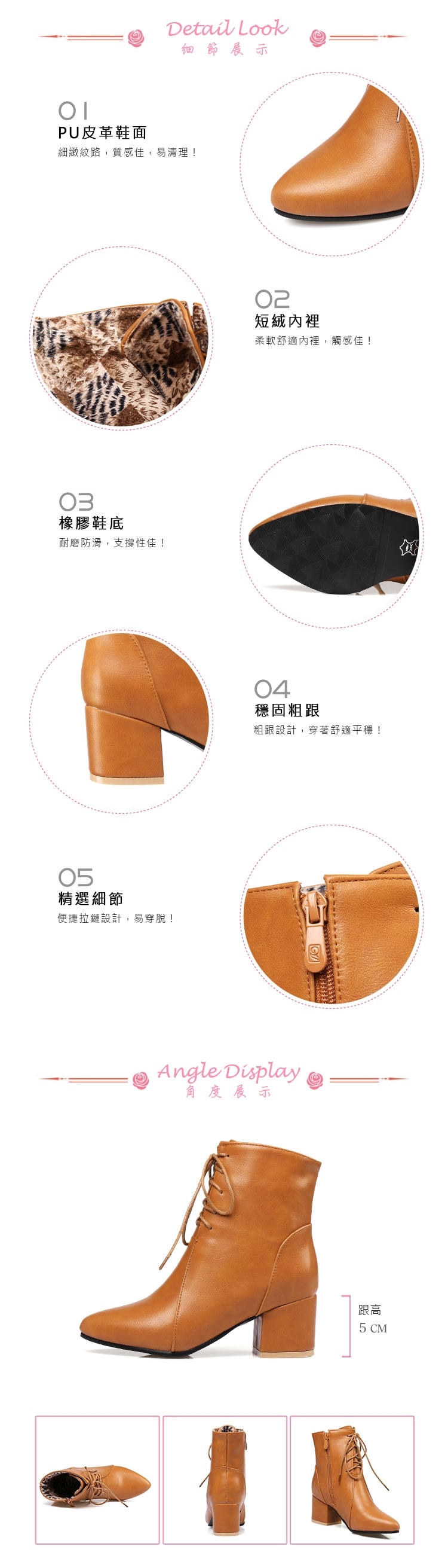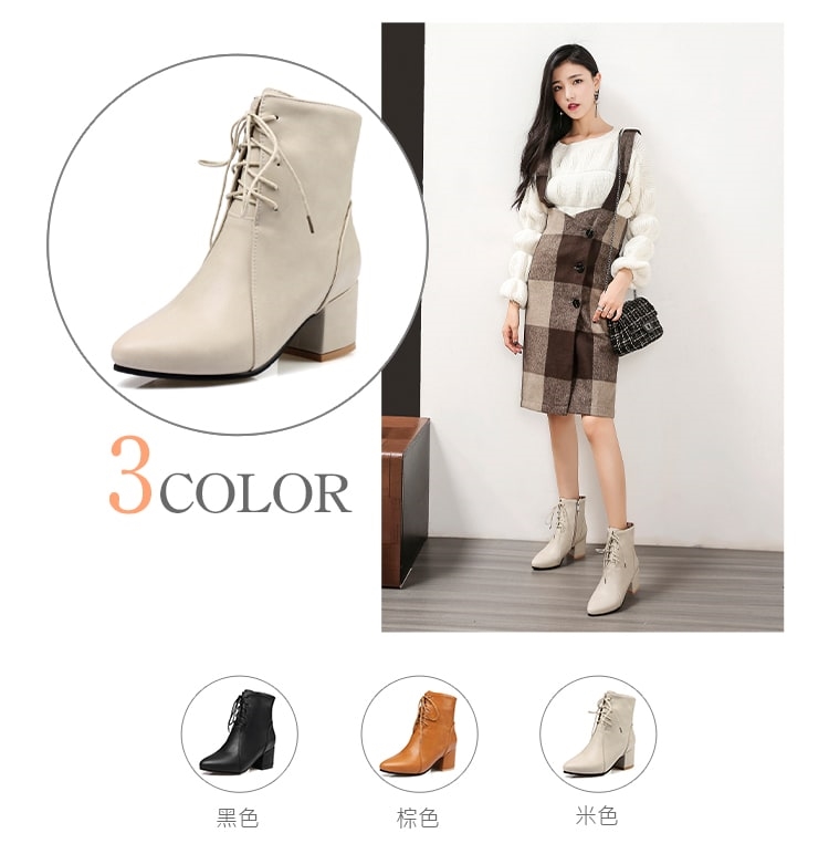 【Kissxxx】尖頭拼接粗跟短靴/美腿效果法式復古尖頭時尚拼接粗跟短靴 女鞋 米