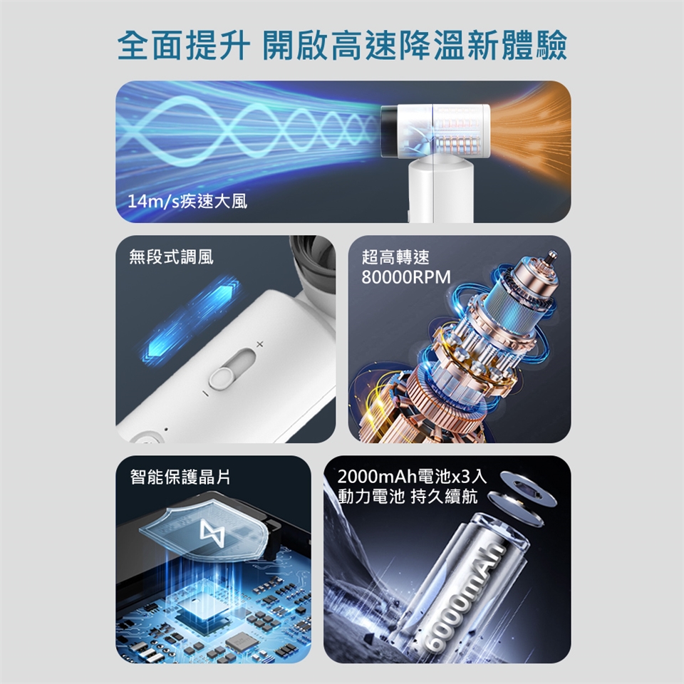 最大轉速8萬RPM,最高可達7級強勁風