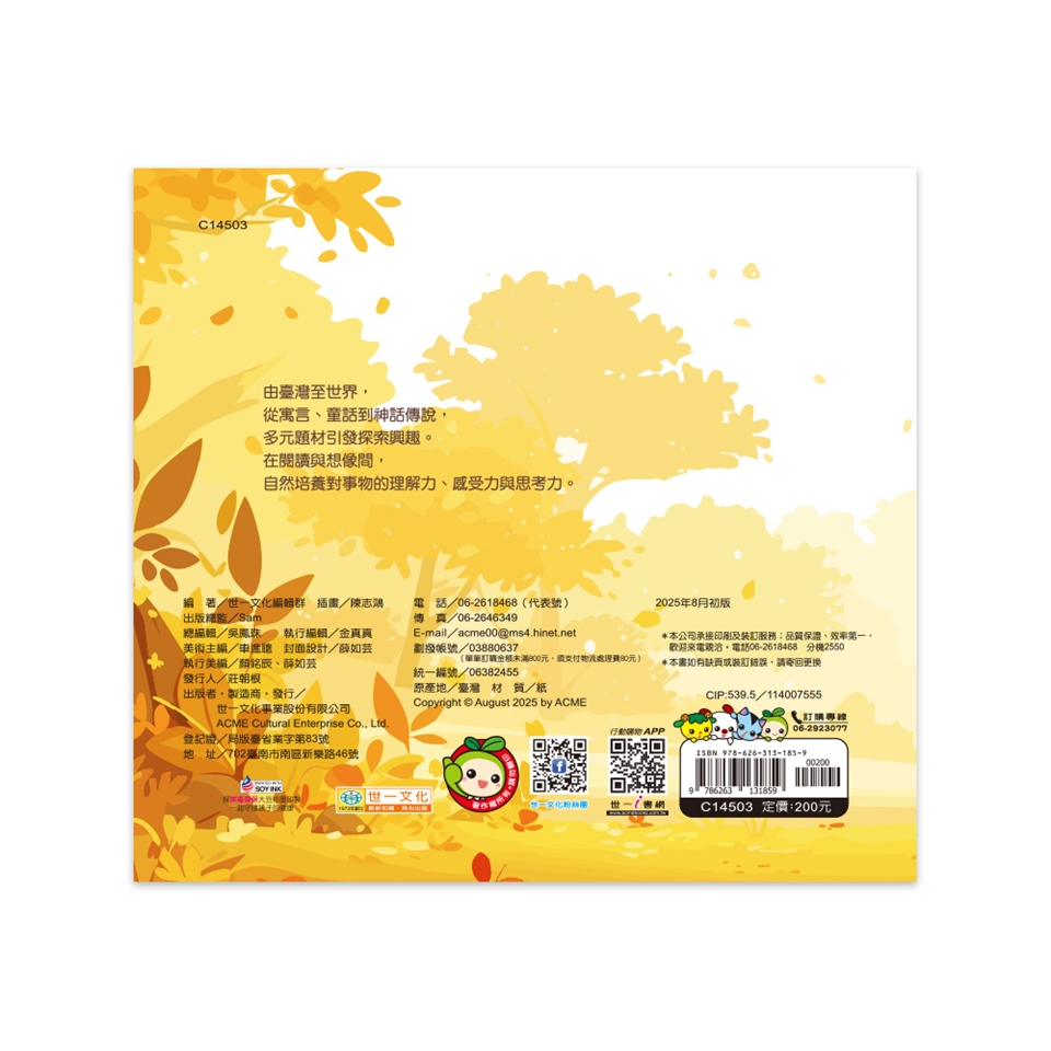 精選來自世界各地的寓言、童話、神話與傳說,帶領孩子走進一個個充滿魔法與 想像力的秋日故事世界.書中每個故事皆搭配活潑精緻的插畫,在圖文交織中營造出溫暖、奇幻又富有文化色彩的閱讀體驗.適合5至10歲兒童親子共讀,也適合作 為孩子獨立閱讀的啟蒙橋梁.