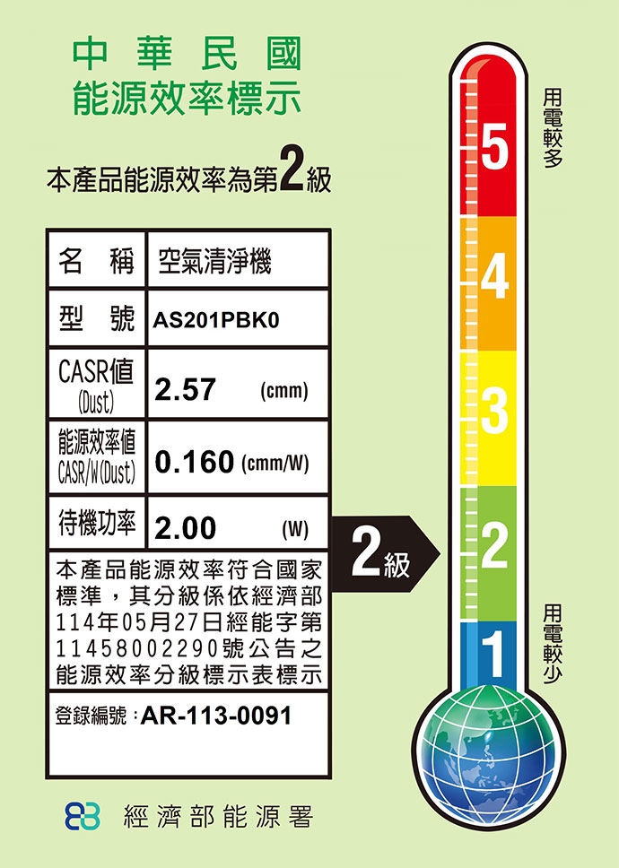 ★能源效率值CASR/W(Dust):0.160