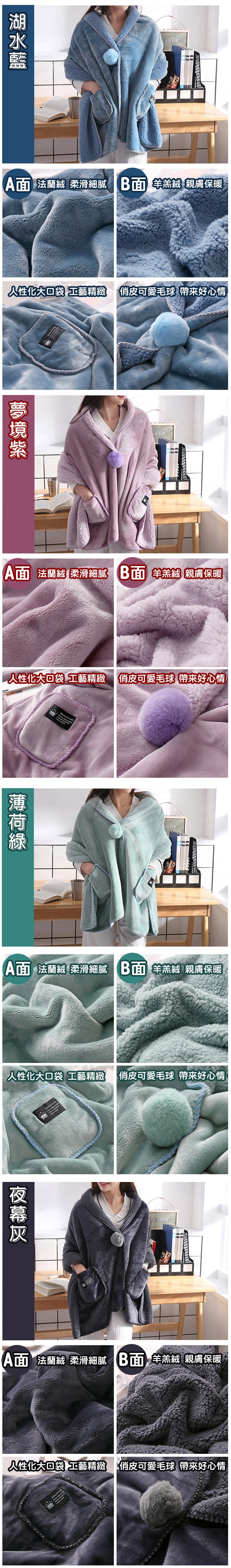 商品名稱:升級加長雙面絨口袋百搭披肩毯-D