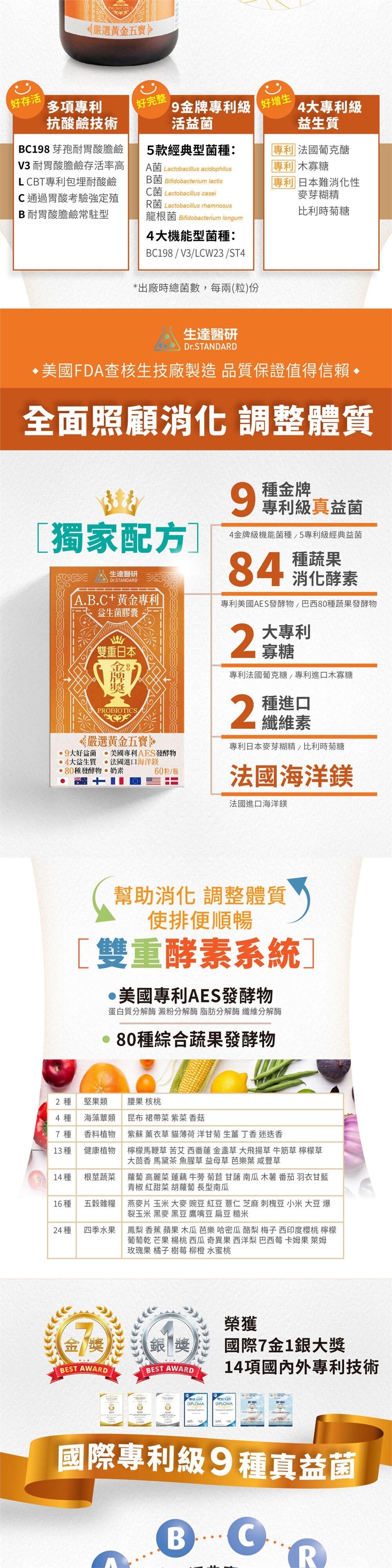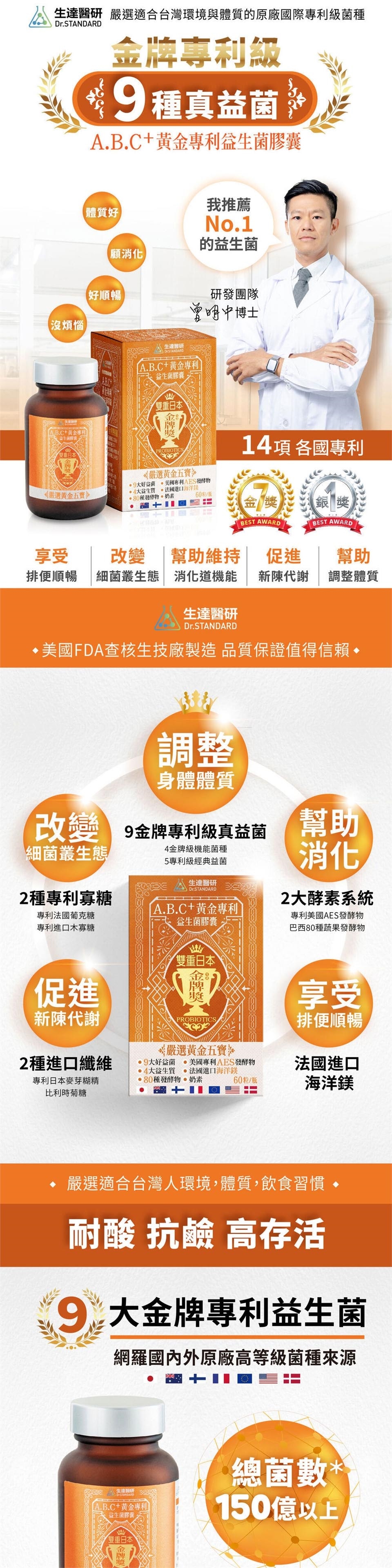 中文品名:生達醫研 A.B.C+黃金專利益生菌膠囊