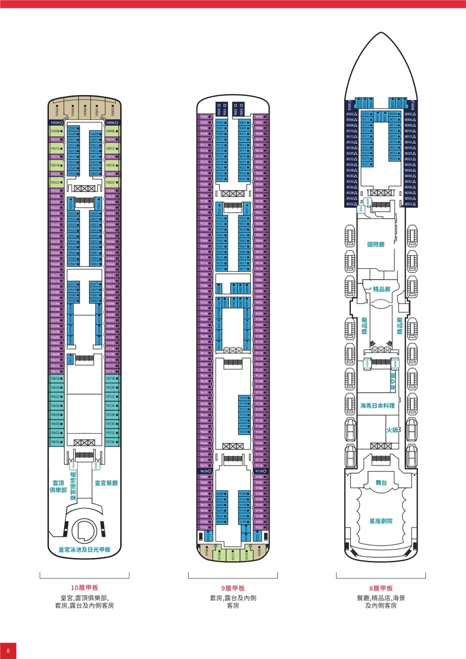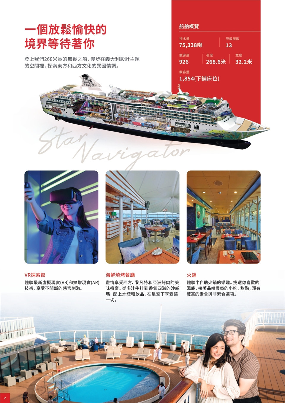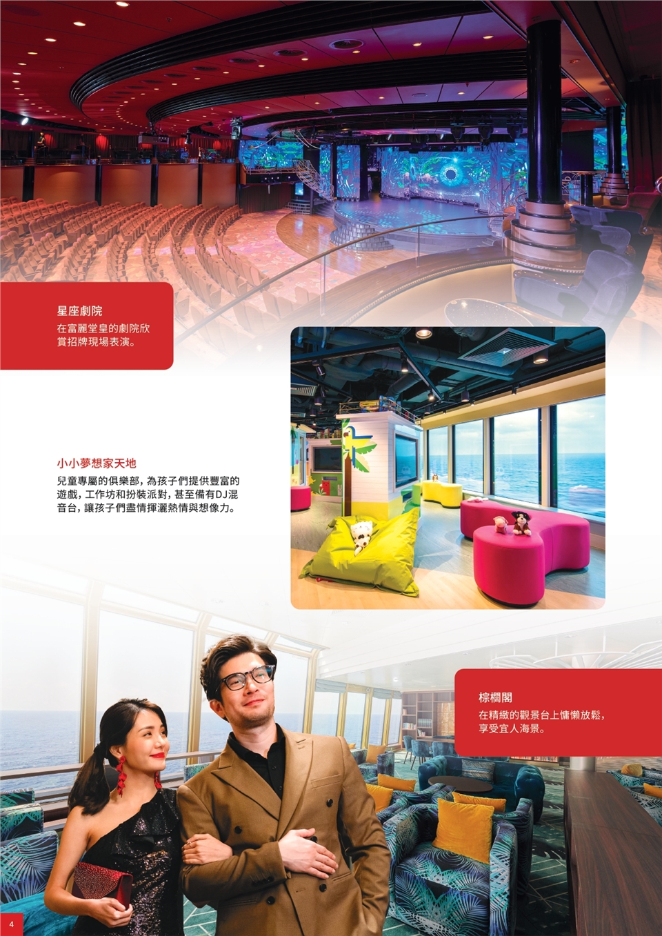 ※ 本行程表內所介紹之各項設施僅供參考,若郵輪上增加或關閉各項設施請恕不另行通知,均依登船後郵輪公司每日所提供之【麗星郵輪 探索星號情報】為準。