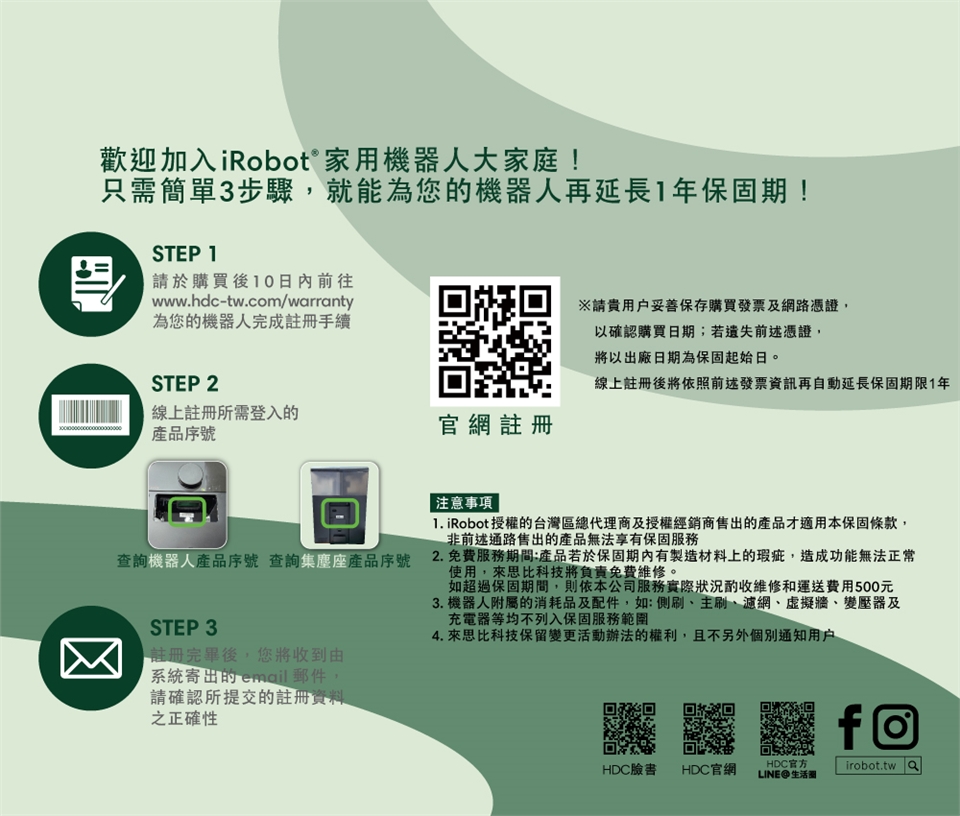 ◎依照消費者保護法規定,消費者均享有商品到貨七天鑑賞期之權益。但退回商品必須是全新狀態且完整包裝(保持商品、附件、包裝、廠商紙箱及所有附隨文件或資料 之完整性),否則恕不接受退訂。因吸塵器屬於衛生清潔用品,一經拆封使用,除產品本身瑕疵,恕無法辦理退貨。若仍須辦理退貨,則需扣除商品清潔整新費用,請各位網友注意!