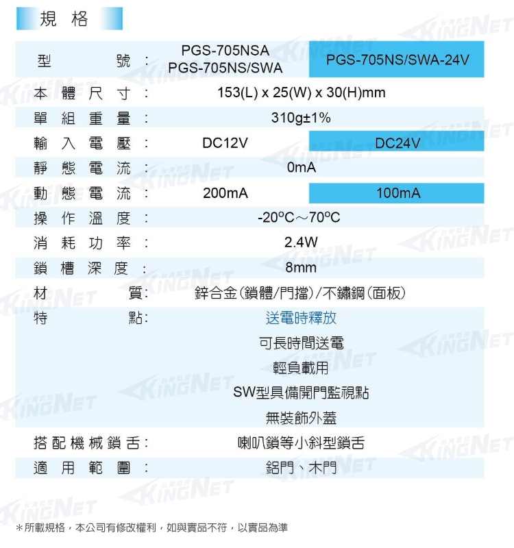 搭配喇叭鎖等斜型鎖舌,無修飾外蓋,送電時釋放