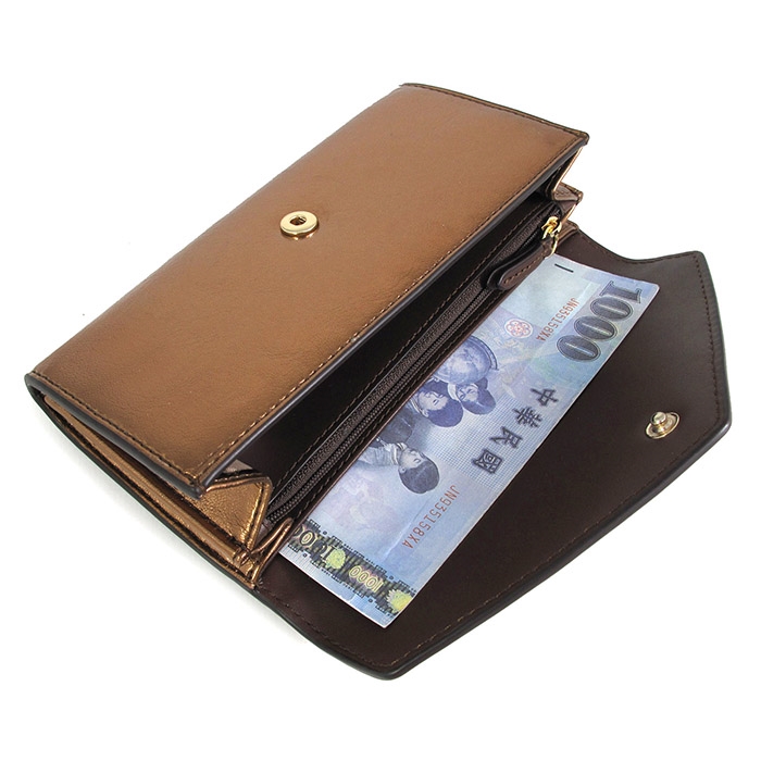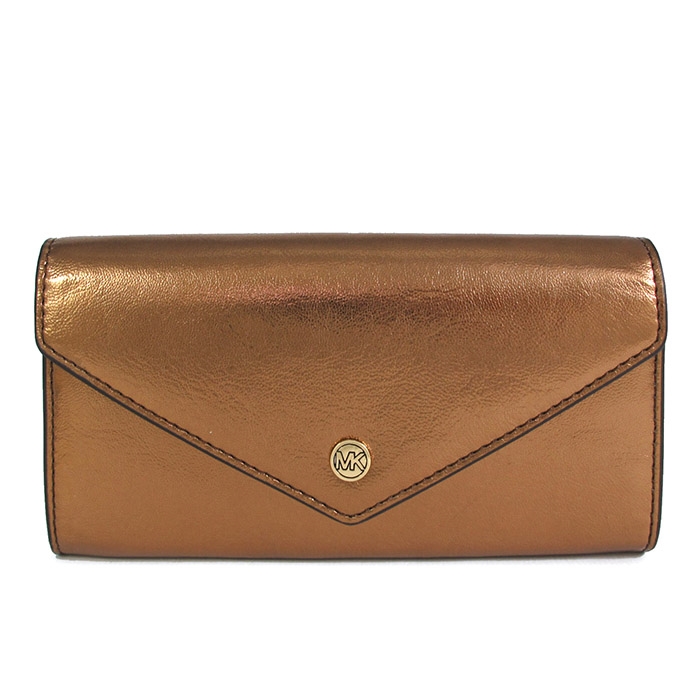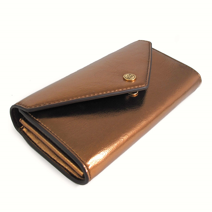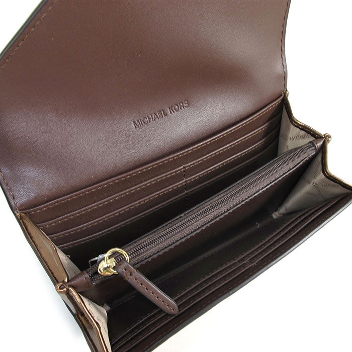 MICHAEL KORS JET SET TRAVEL圓標LOGO壓扣式長夾,皮夾以壓扣做為開合,內有3個內袋、12個卡片層、一拉鍊袋,背面有一外袋,功能實用是您所不可錯過的包款!