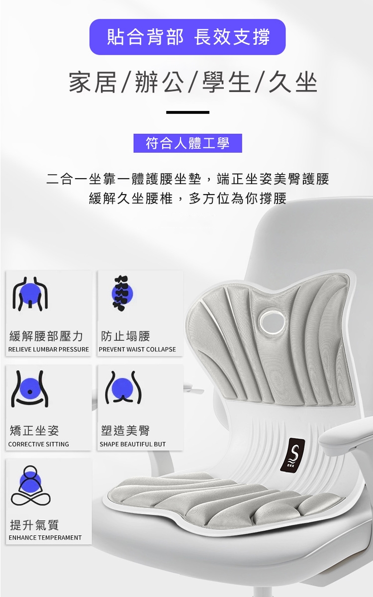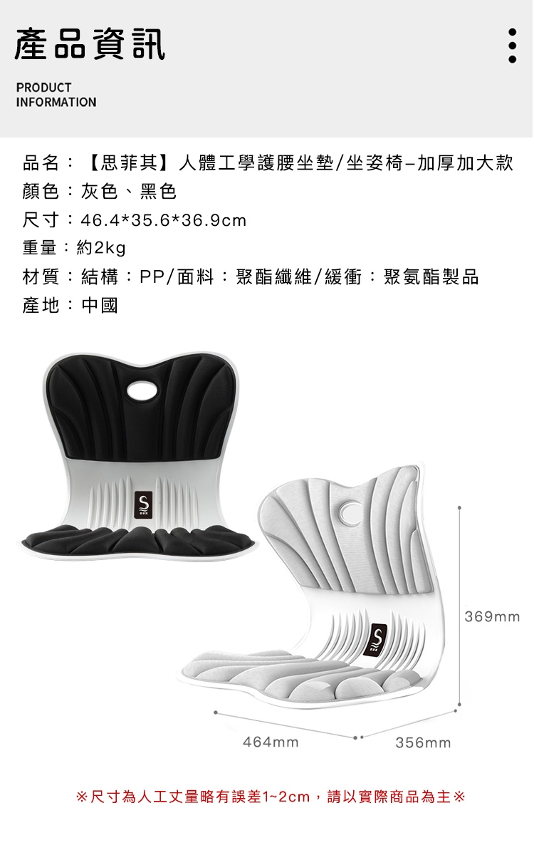 品名:【思菲其】人體工學護腰坐墊/坐姿椅—加厚加大款