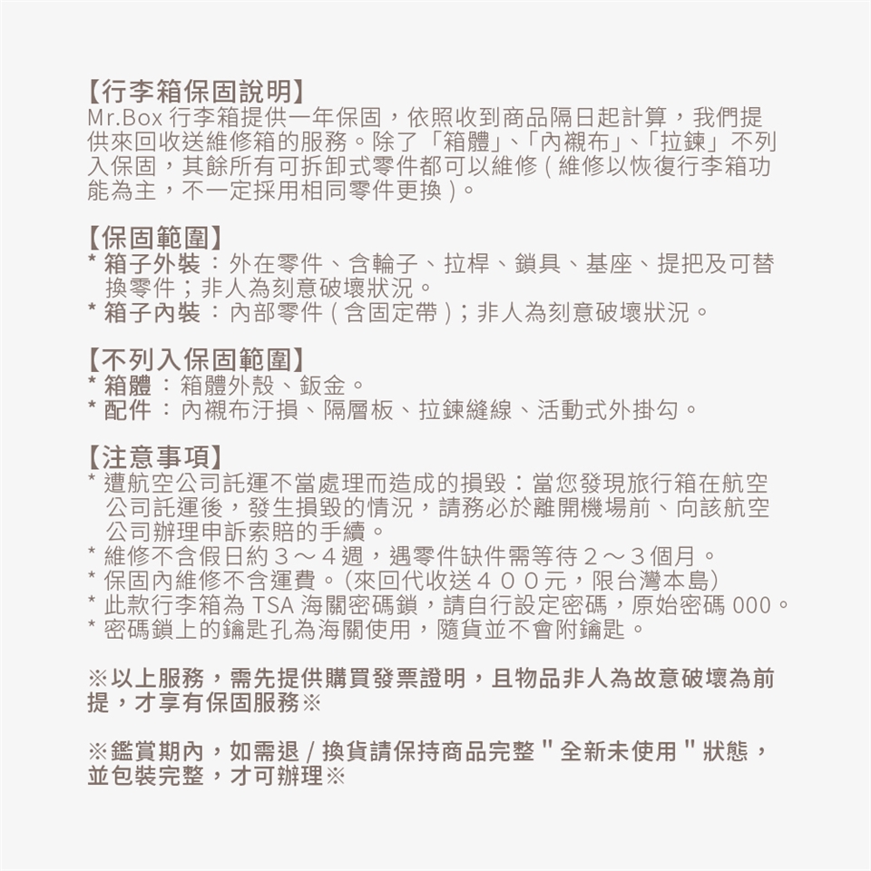 ◆此款行李箱需自行設定密碼,原始密碼為000。