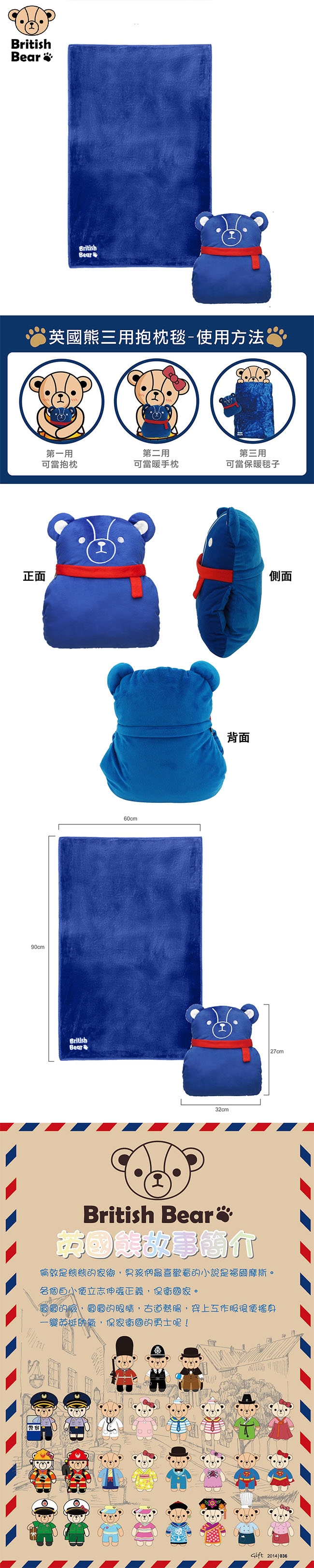 英國熊 三用抱枕毯-英倫風(PP袋) TA-F039B