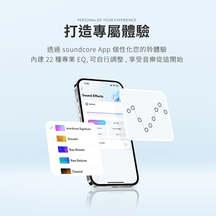 音樂風格 由你定義|搭配soundcore App,隨心調整音效,展現你的個性。