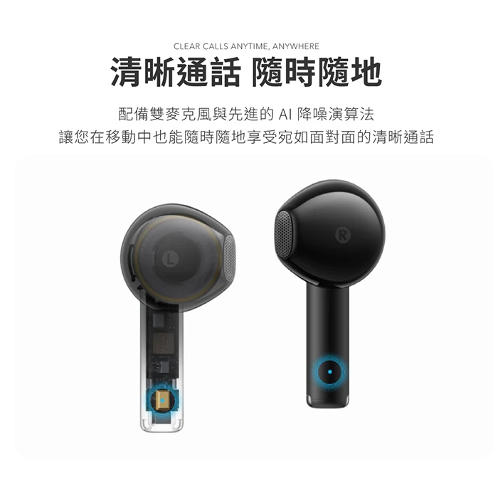 清晰通話 毫無設限|雙麥克風結合AI降噪演算法,無論嘈雜環境,依然保持對話清晰流暢。