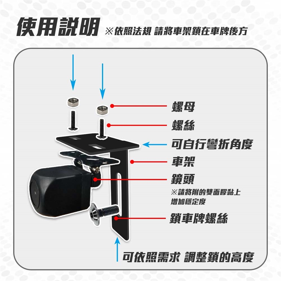 配件:主機/主機支架/鏡頭*2/鏡頭延長線*2/GPS接收器/降壓線/線控器/USB-寶馬接頭線/配件包/車牌鏡頭架(贈品)