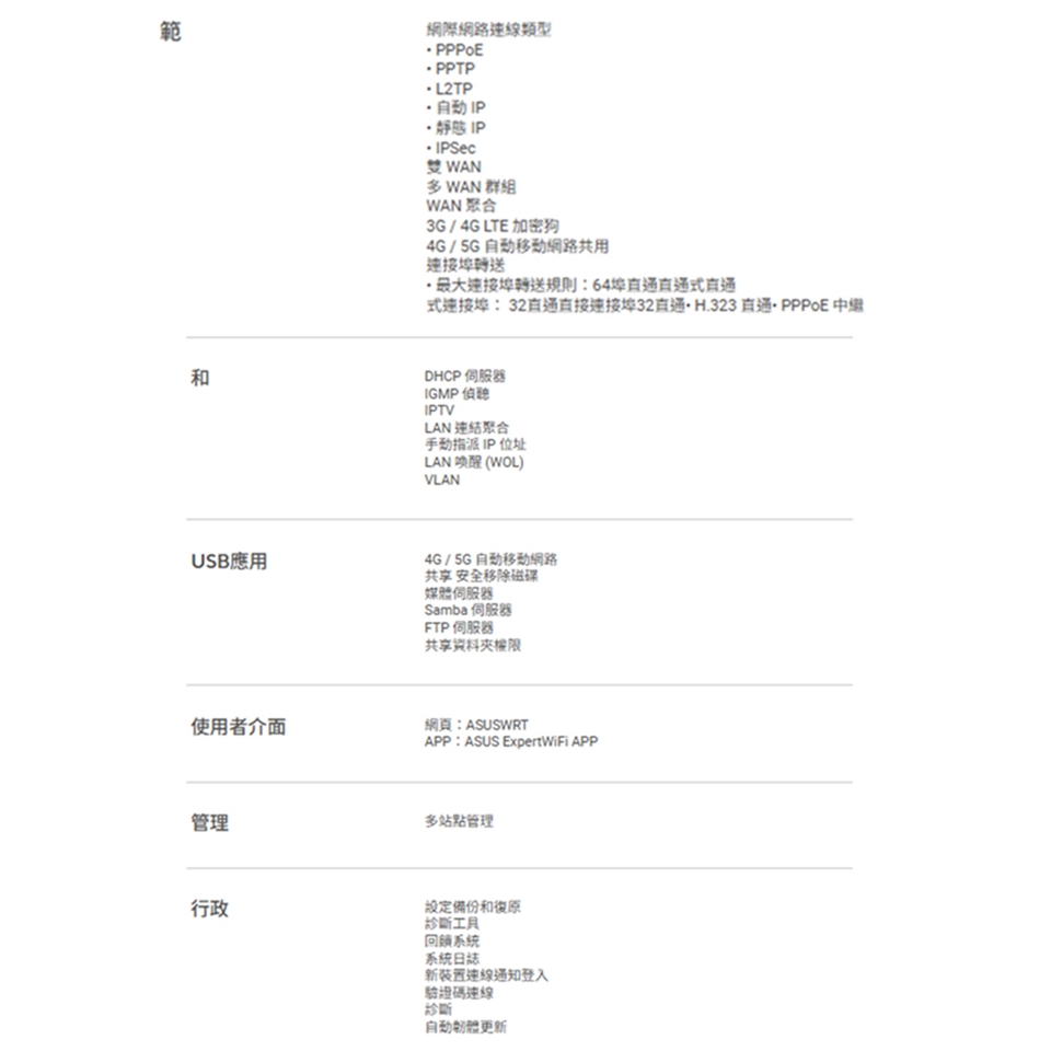 -最多3個WAN乙太網路連接埠,1 個USB WAN、IPS入侵預防、Layer 7防火牆、商業級網路安全、輕鬆集中管理ExpertWiFi應用程式。