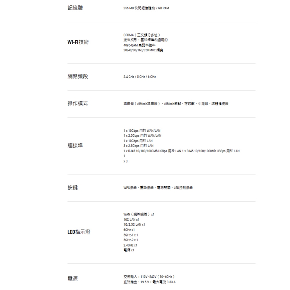 -超高速WiFi 7 (802.11be)採用全新6 GHz頻段的320MHz通道及4096-QAM技術,顯著提升網路容量和傳輸量,最高速度可達25 Gbps。