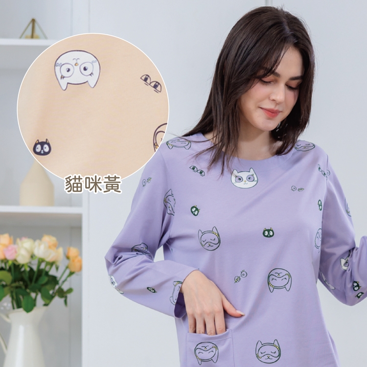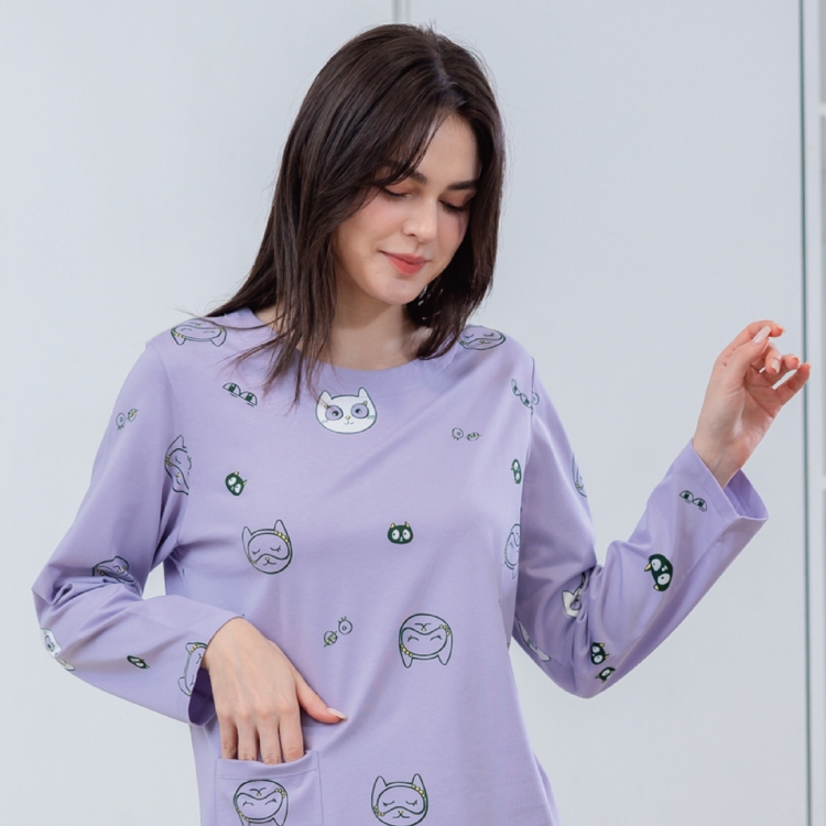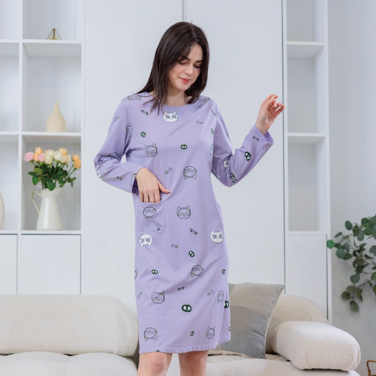 Rosemaid 羅絲美 - 貓咪眼罩100%棉長袖洋裝睡衣
