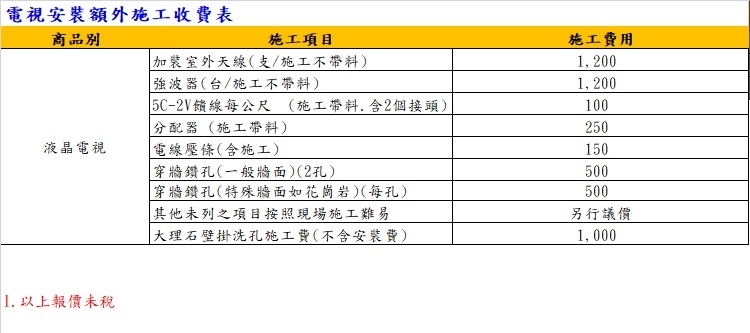 相關配送安裝費用問題,請詳閱規格說明