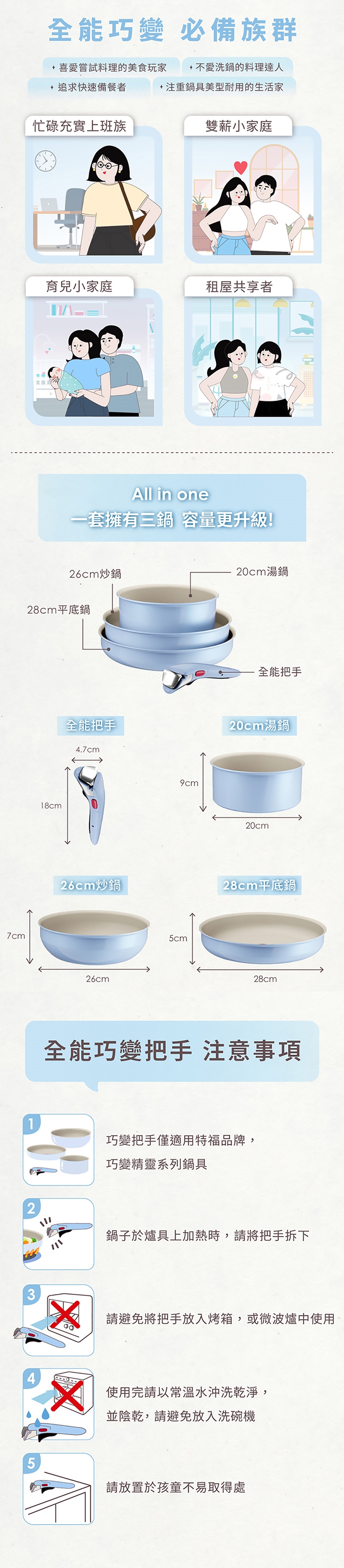 *組合內含:28cm平底鍋+26cm炒鍋+20cm湯鍋+可拆式把手