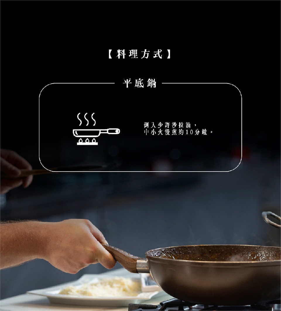 2退冰後,倒入少許沙拉油,中小火慢煎約10分鐘