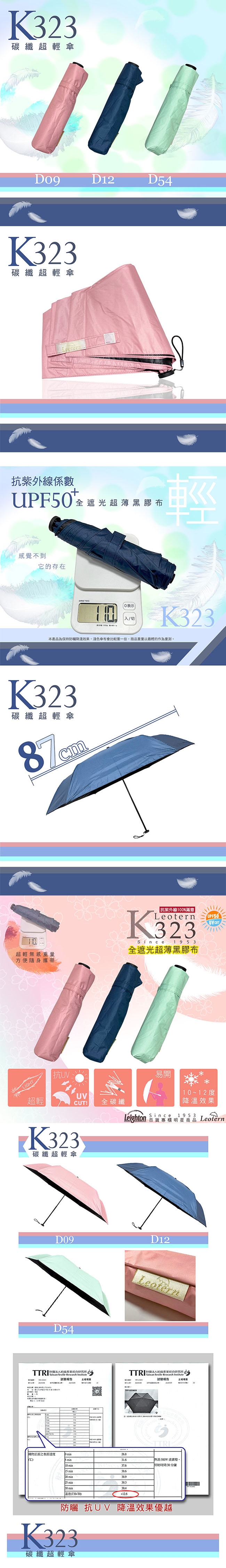 Leotern萊登 碳纖超輕三折傘(黑膠)(顏色隨機出貨) K323