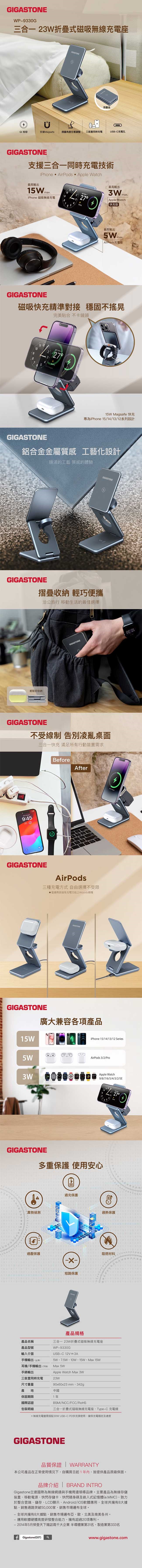 GIGASTONE 三合一 23W折疊式磁吸無線充電座 WP-9330G