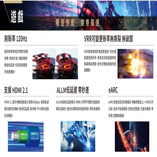 GameMode、HDMI 2.1、ALLM、VRR、eARC