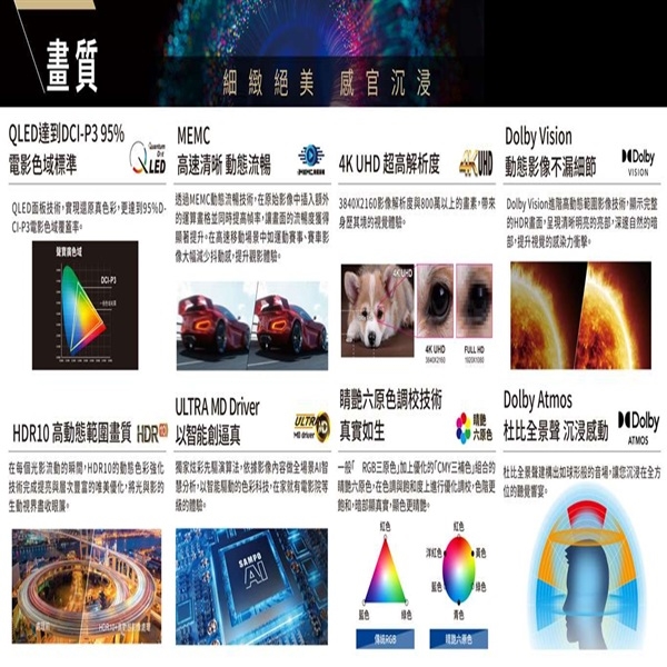 QLED量子點高色域 色域標準DCI-P3達95%以上