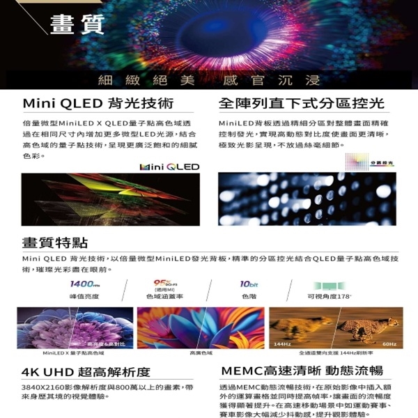 Mini QLED + 全陣列直下式分區控光