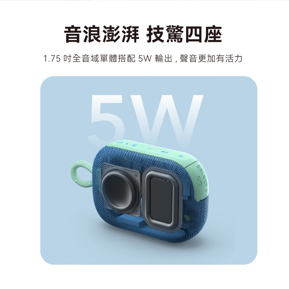 巧機身內藏 5W 強勁輸出,釋放充滿活力的澎湃音效。