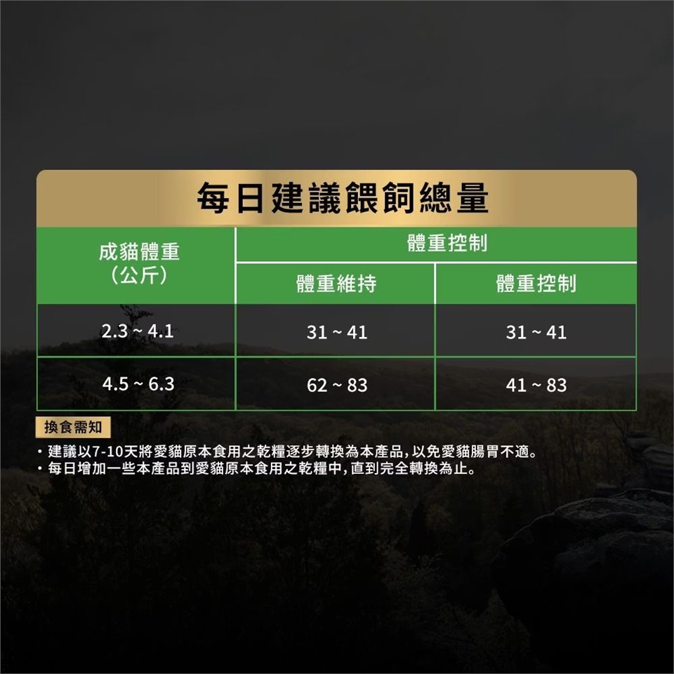 1.本產品建議餵飼量係依照一般成貓平均營養需求所設計。每隻成貓的代謝能力、體重、活動量、年齡、結紮與否等均會影響其每日所需攝食量。若您發現您的愛貓有體重增加或體重減輕之情形,可自行調整餵飼量,以維持理想體態。