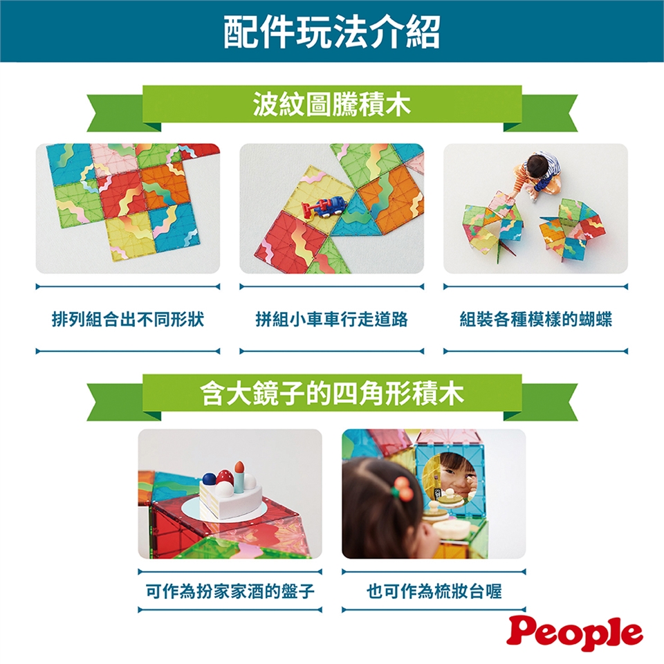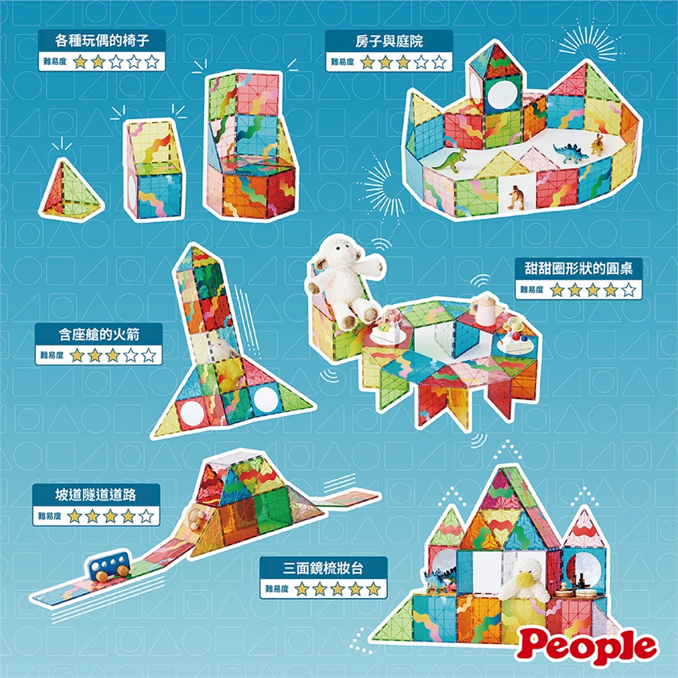 People益智磁性積木是一款能伴隨孩子成長的智育玩具,具磁石特性,1歲起的幼兒即能輕鬆組裝拆卸。