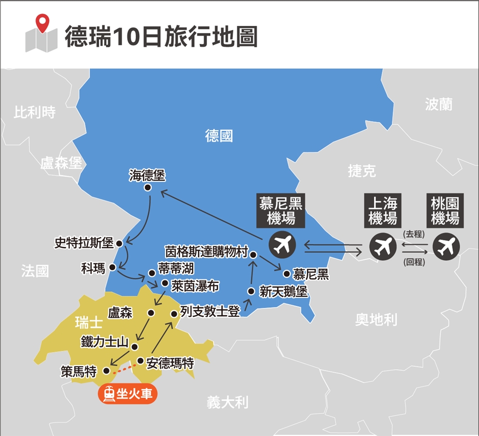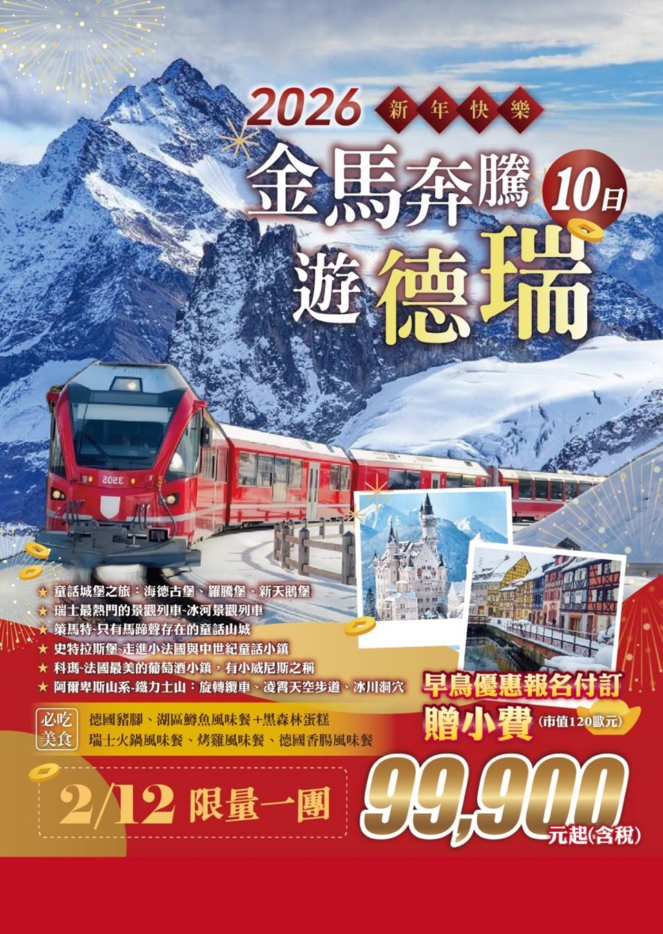 德國瑞士浪漫之旅的尾端,心中美好的風景和團員們一路上的歡笑,今天帶著依依不捨的心情前往機場,由領隊協助辦理登機手續,搭乘豪華客機經由上海轉機,返回桃園國際機場。 早餐:飯店內享用 午餐:配合搭機,敬請自理 晚餐:機上饗宴 |