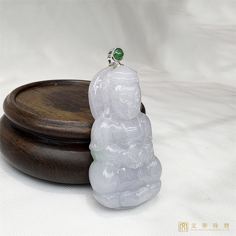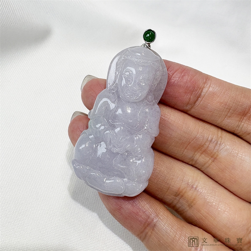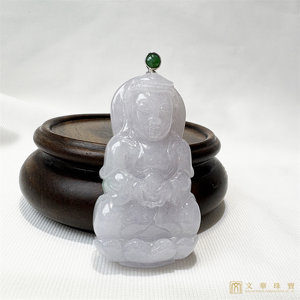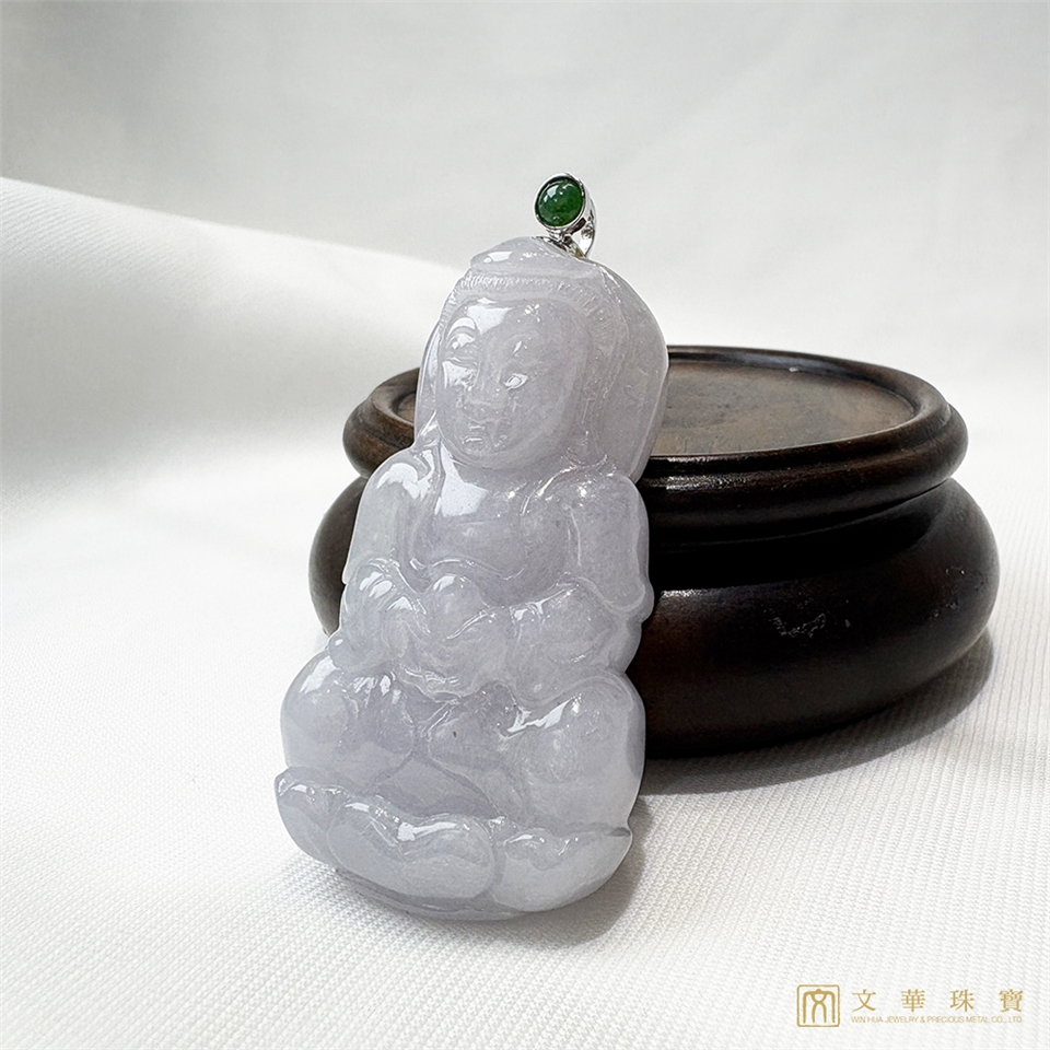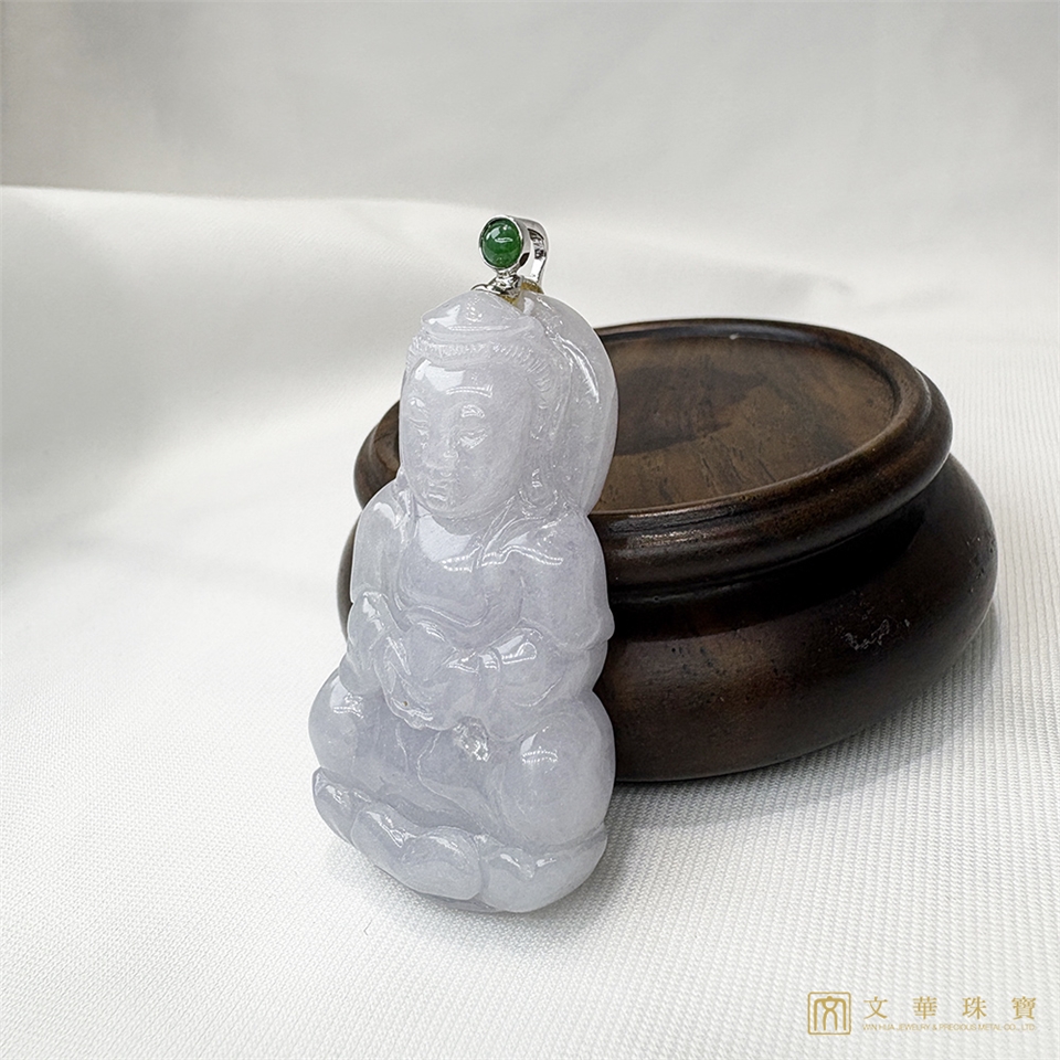 【文華珠寶】厚莊糯種粉紫觀音玉墜 不含鍊