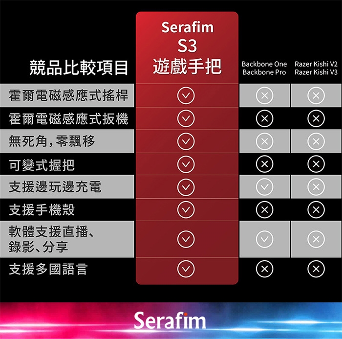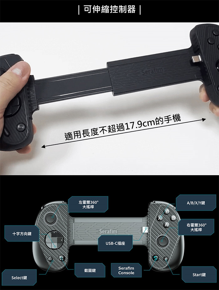 Serafim S3 遊戲手把 APP 目前支援附有 USB Type C 接頭與 OTG 的 Android 10+ 以上手機系統。