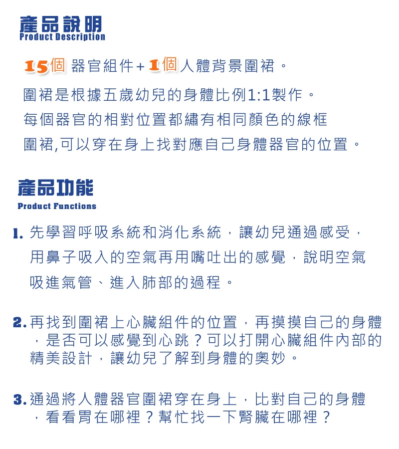 【兒童學習的好助手】 人體器官布圍裙#14606