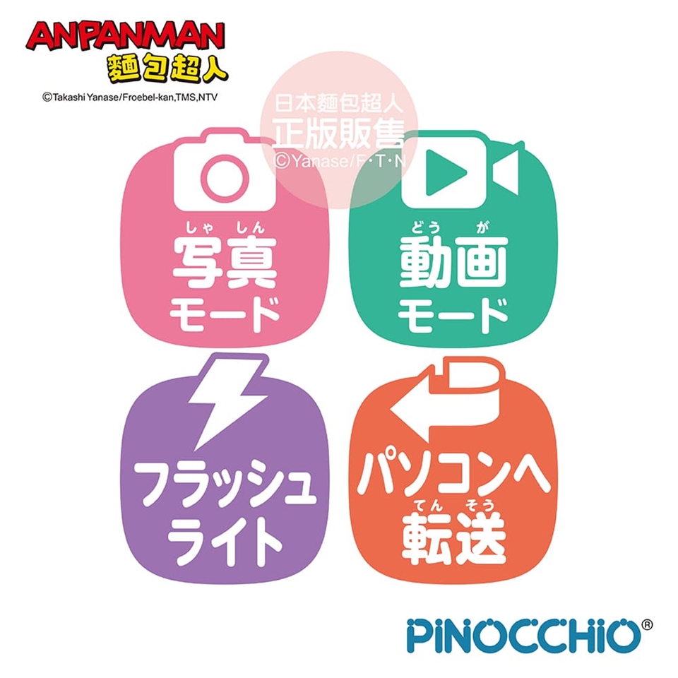 專屬孩子的相機,30萬畫數,收錄13種麵包超人日語對話,28種可愛圖案邊框,