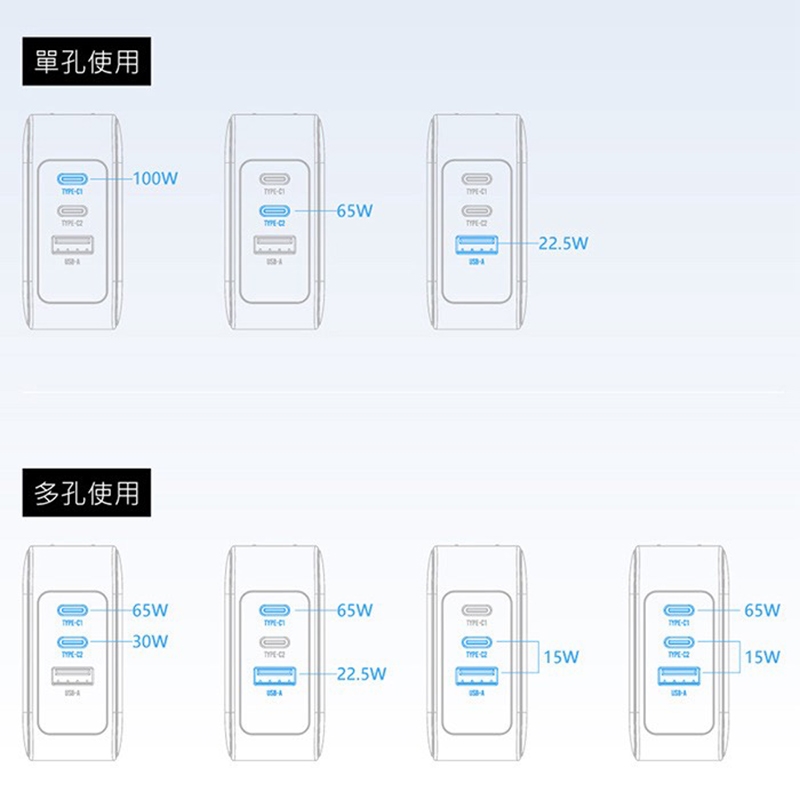 .支援100W PD3.0 / Q.C3.0 快充協議