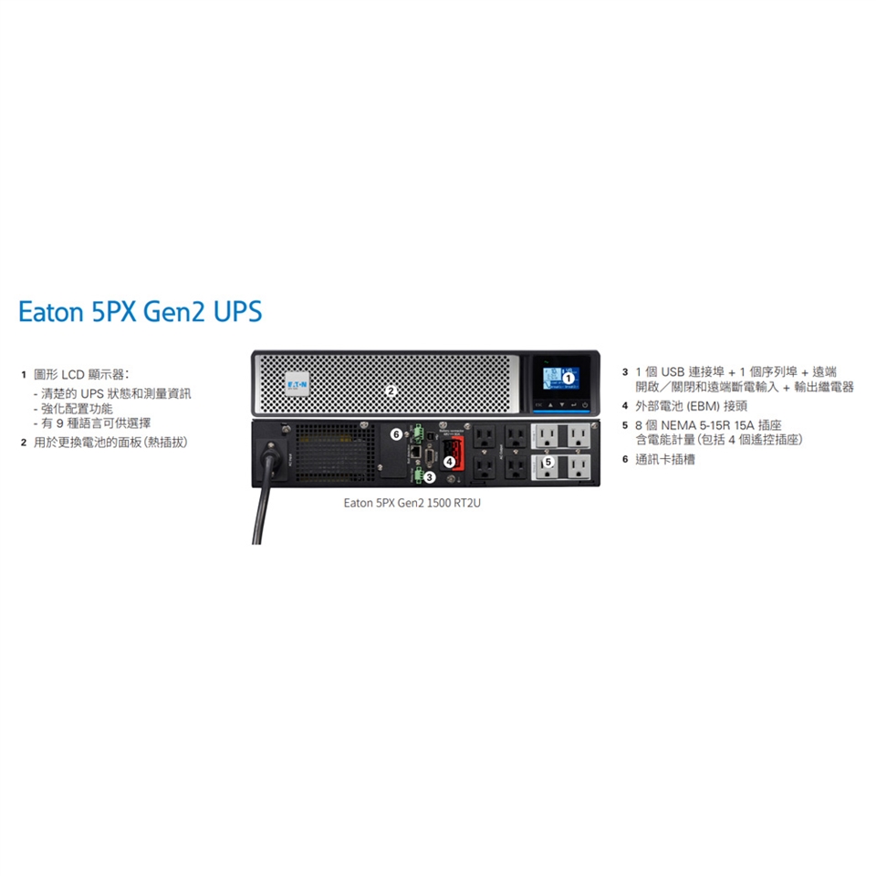 具備LCD 圖形介面顯示,可顯示負載容量及電池備用時間等資訊