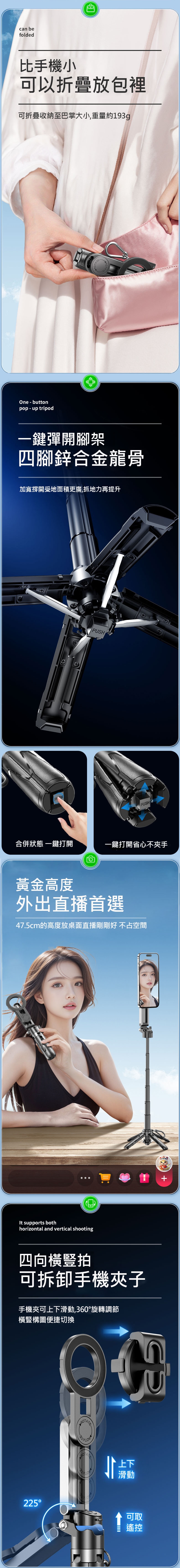 ◆一鍵彈開四腳架,省心不傷手,直播好幫手