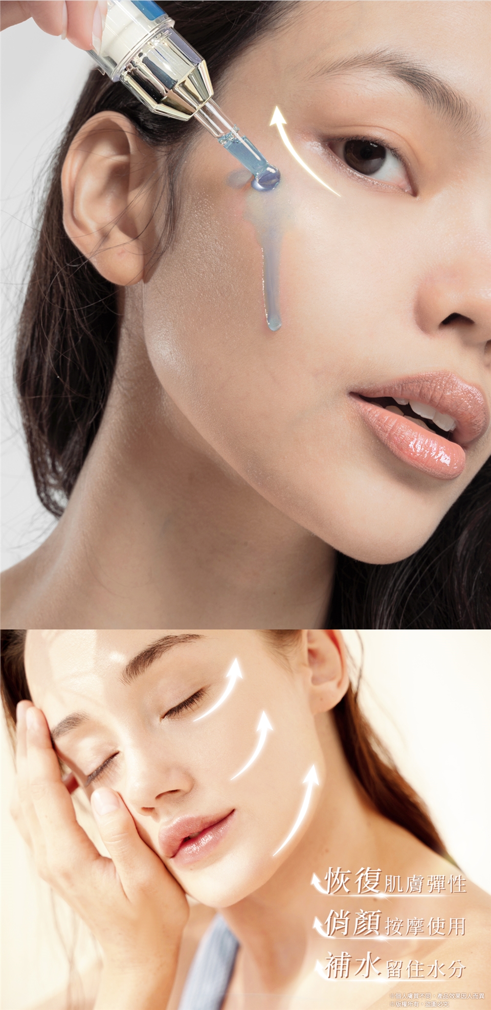 早晚臉部清潔後取適量以指腹輕柔按摩全臉及頸部肌膚至吸收即可。