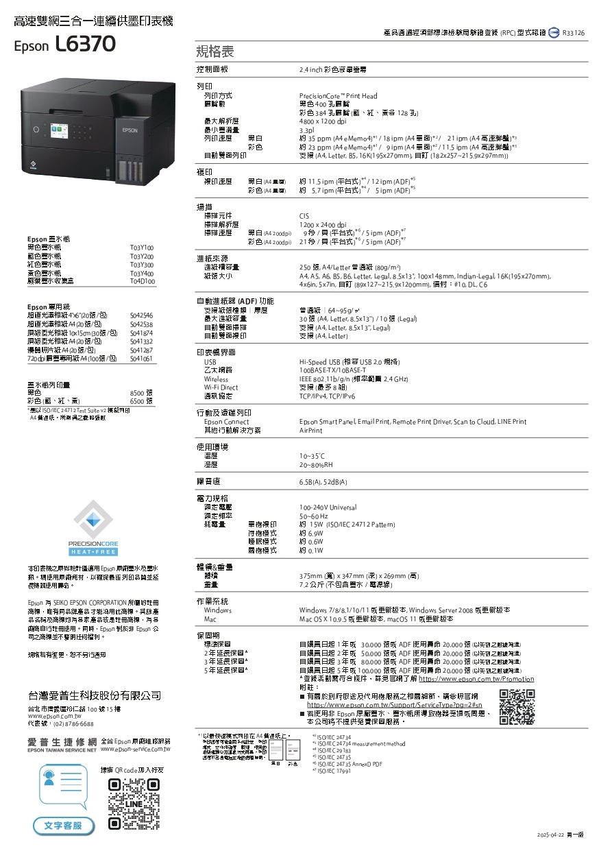 ■活動期限: 2025/11/01~2025/11/30止,購買指定機種+原廠墨水(最低購機金額9,490元)