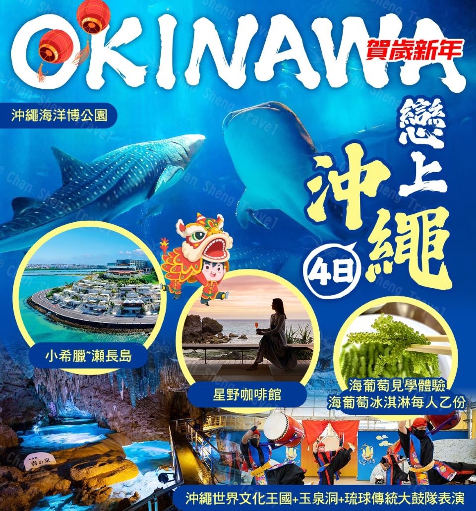 搭乘舒適班機抵達日本最南端之島嶼,有東方夏威夷之稱,浪漫多情的琉球群島-沖繩。抵達後隨即接往飯店休息。 早餐:XXX 午餐:XXX 晚餐:日式定食 |