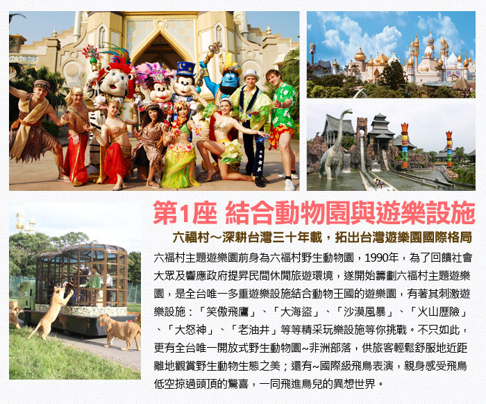 0~2歲以下免費(不含票券內容);3歲以上1980元(含早餐.六福村二日門票.非洲探險遊戲島門票)