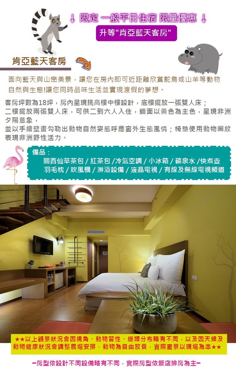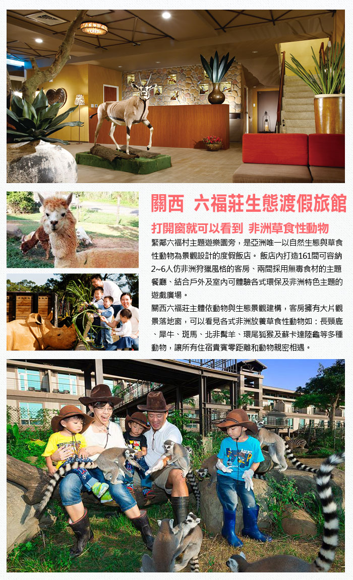 6.前三日預約飯店動物體驗(羊駝/狐猴/象龜/狐懞/草原/勇闖猛獸島/蘇丹犀望巴士/保育員)享牌價85折優惠