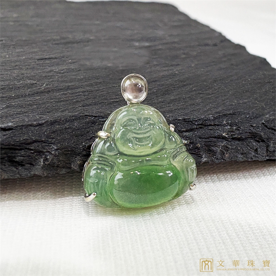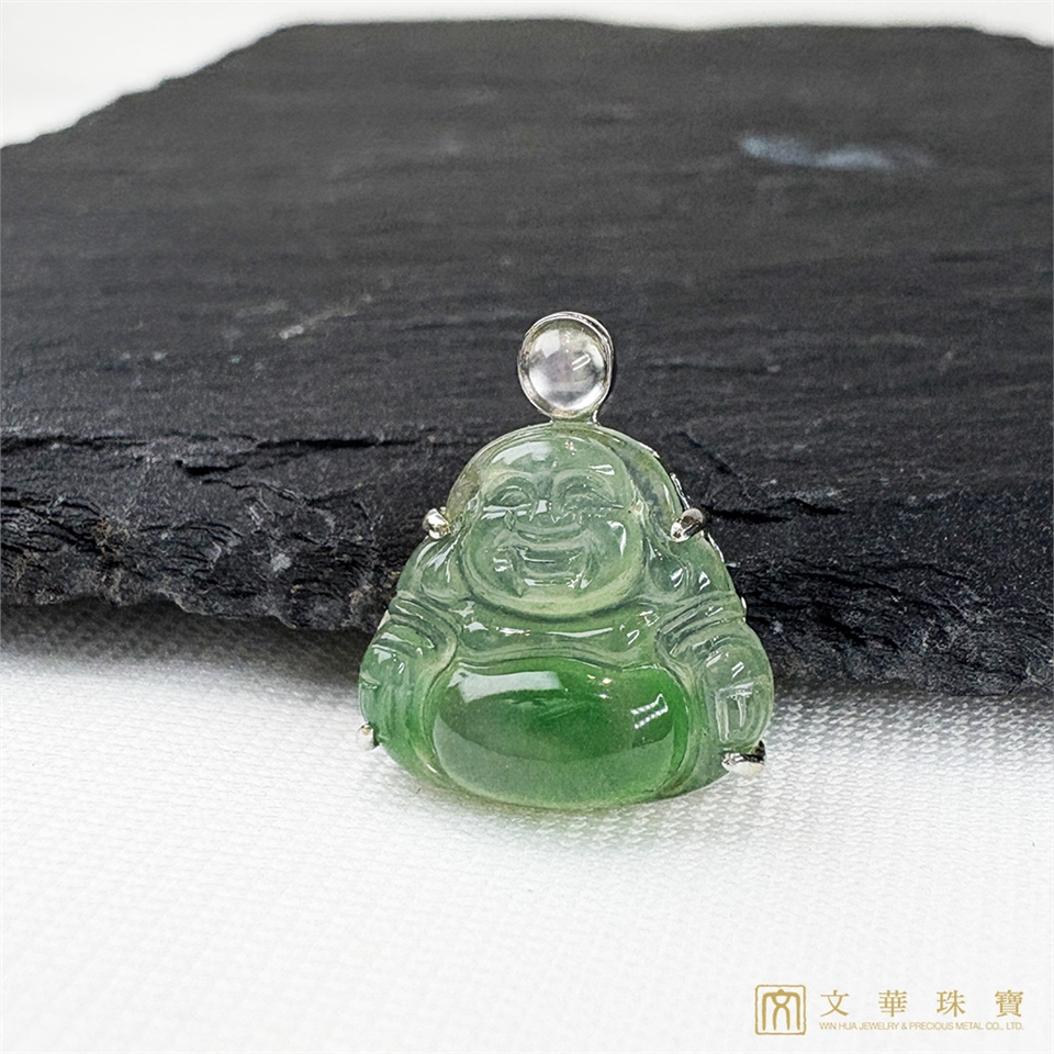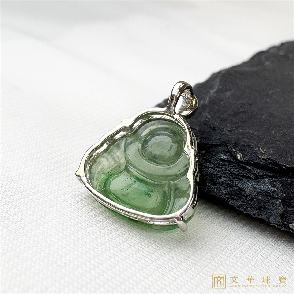 【文華珠寶】玻璃種翠綠迷你佛翡翠玉墜 不含鍊