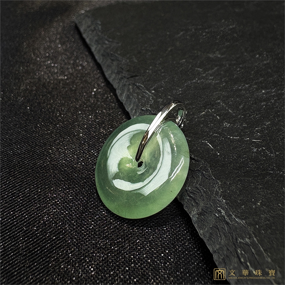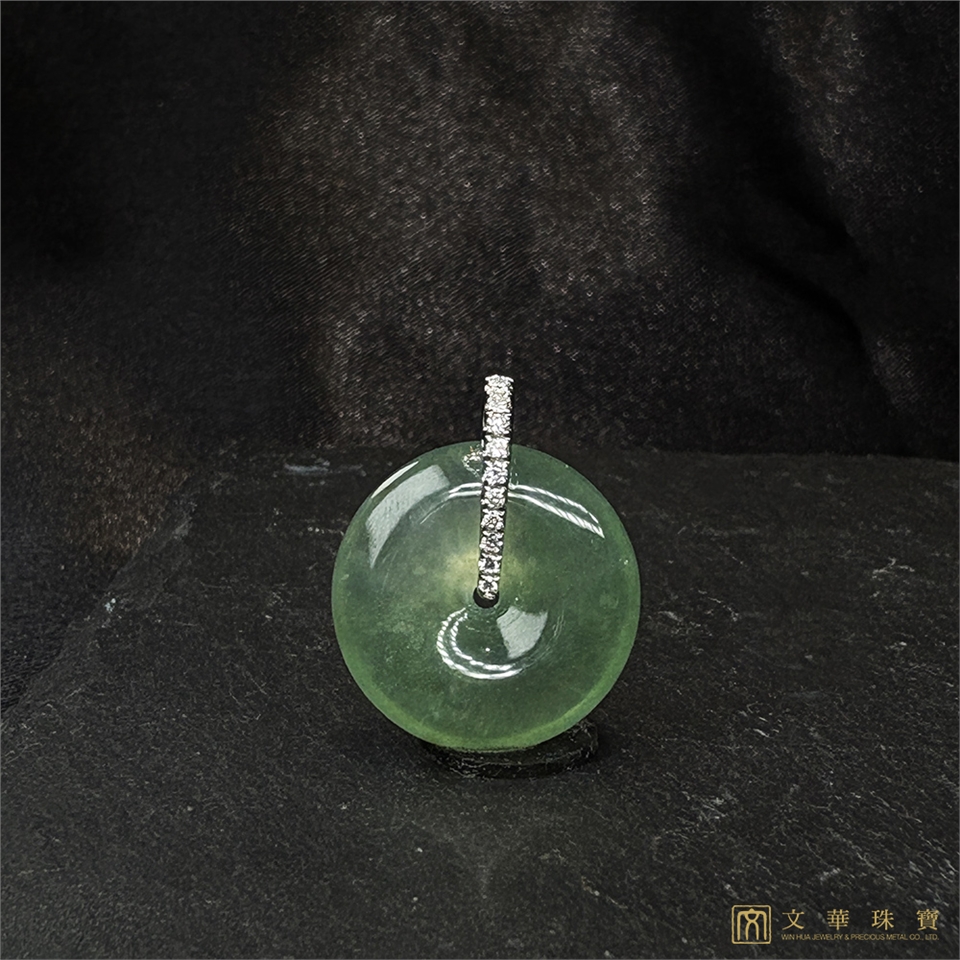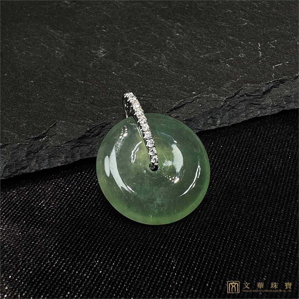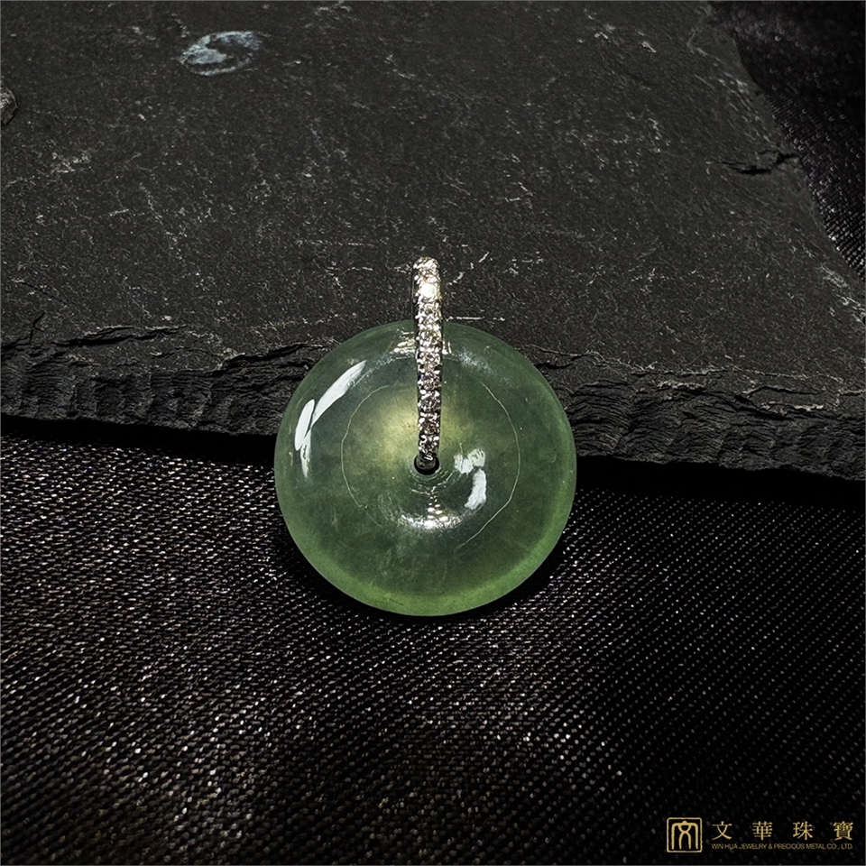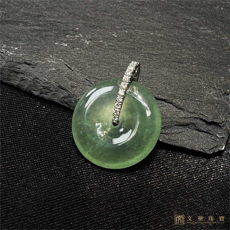 【文華珠寶】玻璃種滿綠平安扣翡翠鑽墜 不含鍊