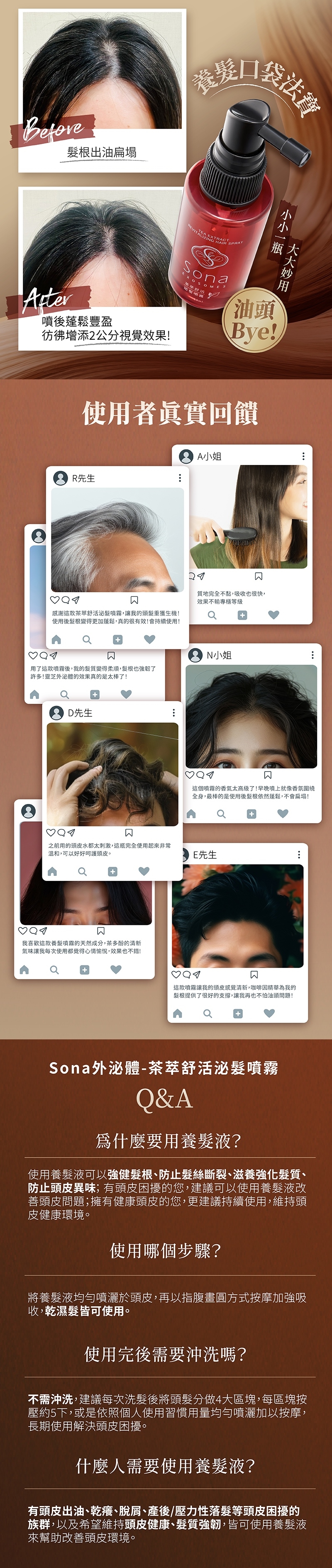 - 使用方法 -將養髮液均勻噴灑於頭皮,再以指腹畫圓方式按摩加強吸收,乾濕髮皆可使用。
