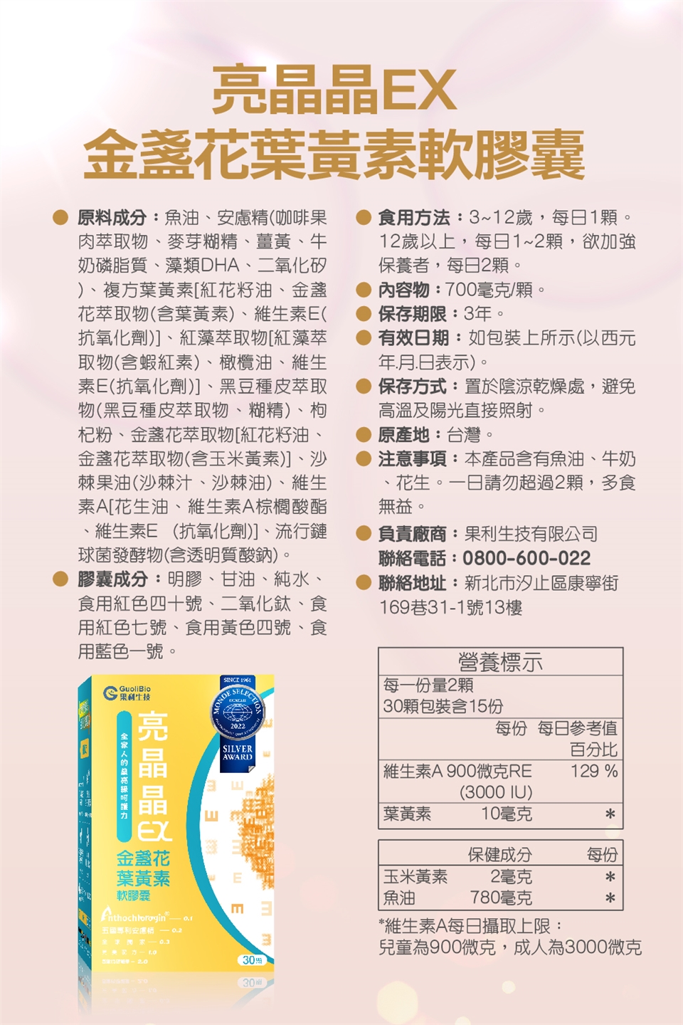 本產品含有魚油牛奶花生。一日請勿超過兩顆,多食無義。